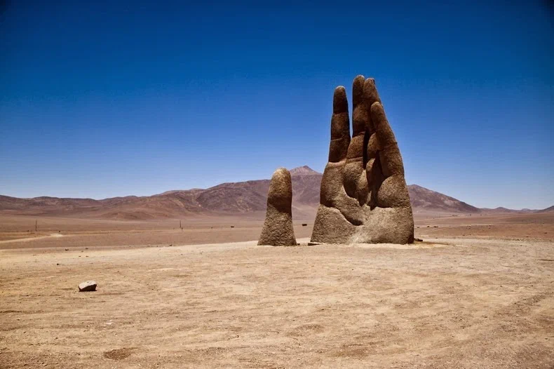 Когда я вижу различные места по всему миру и то, что они могут предложить, мне просто хочется собрать чемоданы и отправиться в ближайший аэропорт. Затем я оказываюсь там и понимаю, что у меня нет ни средств, ни денег, чтобы исполнить все мои желания и мечты о путешествиях. В центре пустыни Атакама, расположенной в Южной Америке, из земли поднимается гигантская рука, напоминающая останки древней цивилизации. На самом деле это вполне современная скульптура, произведение искусства под названием Mano del Desierto, созданное чилийским художником Марио Ирразабалем в память о жертвах несправедливости и пыток во время военного режима в Чили.