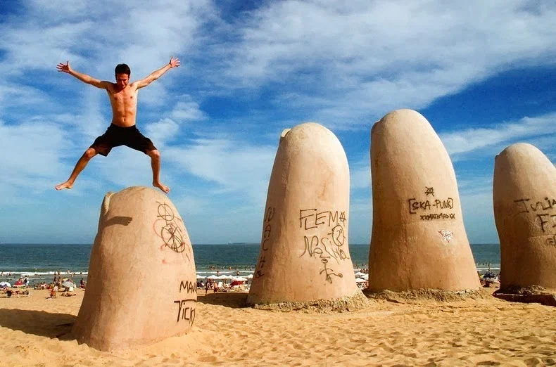 Вот еще одна рука на пляже Брава в Пунта-дель-Эсте, Уругвай.