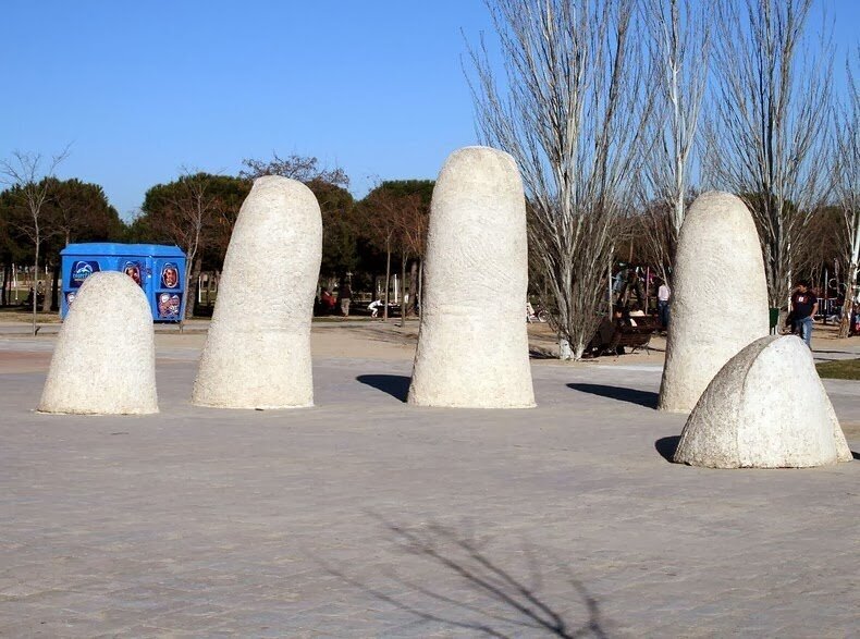 Один из них находится на пляже Брава в Пунта-дель-Эсте, Уругвай, и известен под разными названиями, такими как Hombre emergiendo a la Vida (Человек, выходящий в жизнь), Monumento Los Dedos (Памятник пальцам) или Monumento al Ahogado (Памятник утопленникам).