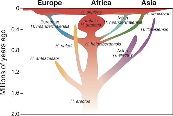 Неандертальцы появились более 400.000 лет назад, скорее всего, от более раннего предка Homo heidelbergensis. Они были чрезвычайно плодовиты и распространились на территории от Средиземноморья до Сибири. Они обладали высоким интеллектом, их мозг был в среднем больше, чем у Homo sapiens.